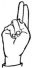 На ћирилици написано НИКОЛА ГОДОЧЕВИЋ састоји се из 15 слова [?]. Исписано ћириличном једноручном азбуком за глувонеме: